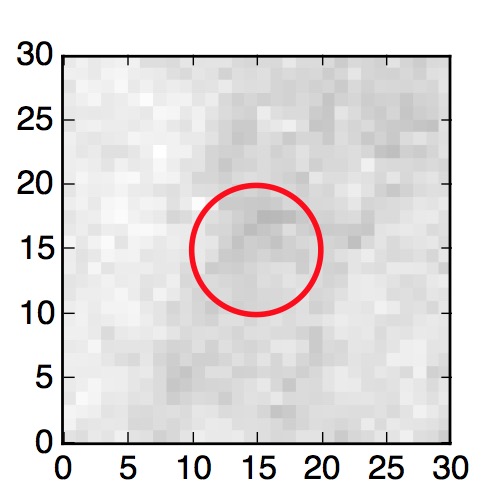 The red circle in the various panels is 1" in radius. The images are 6"x6".