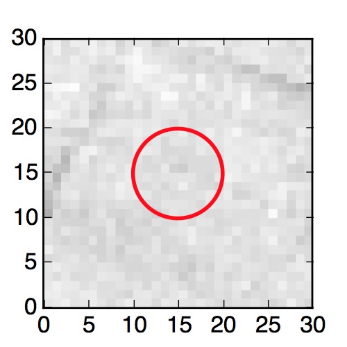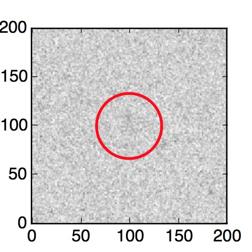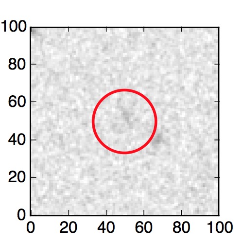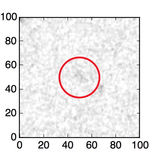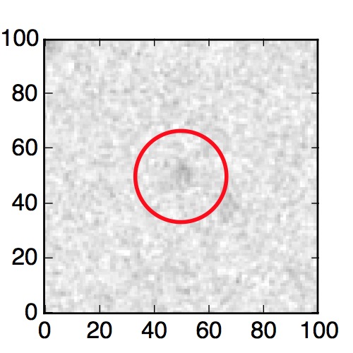 The red circle in the various panels is 1" in radius. The images are 6"x6".