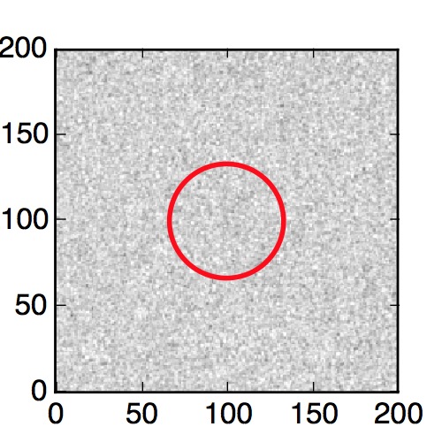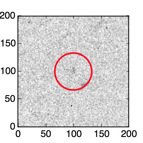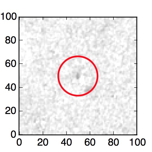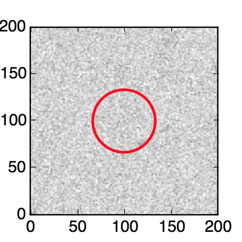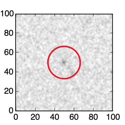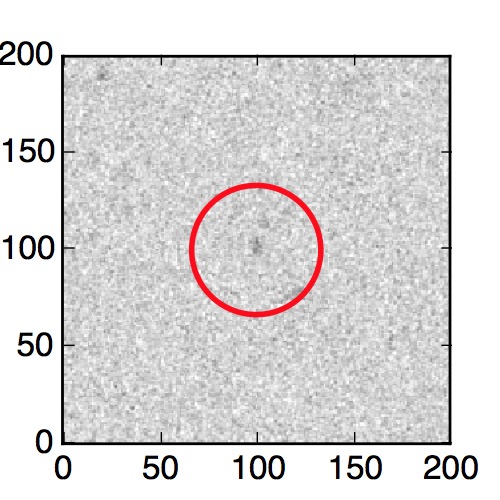 The red circle in the various panels is 1" in radius. The images are 6"x6".