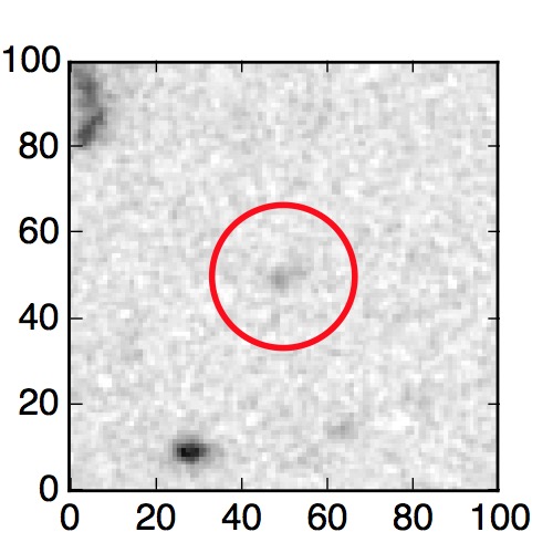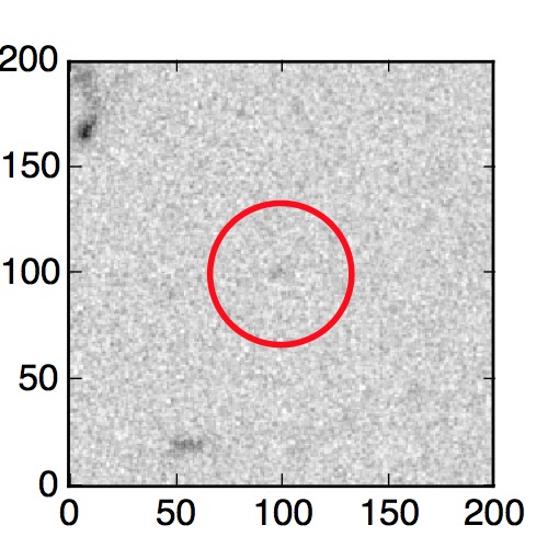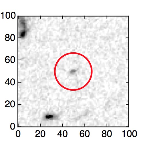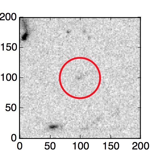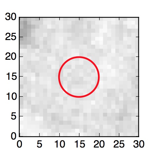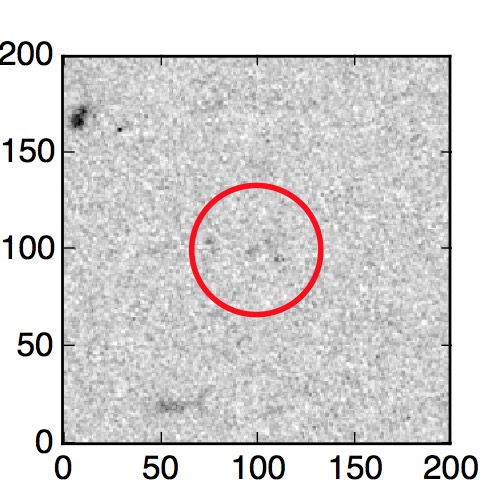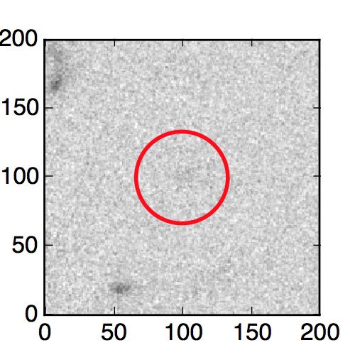 The red circle in the various panels is 1" in radius. The images are 6"x6".
