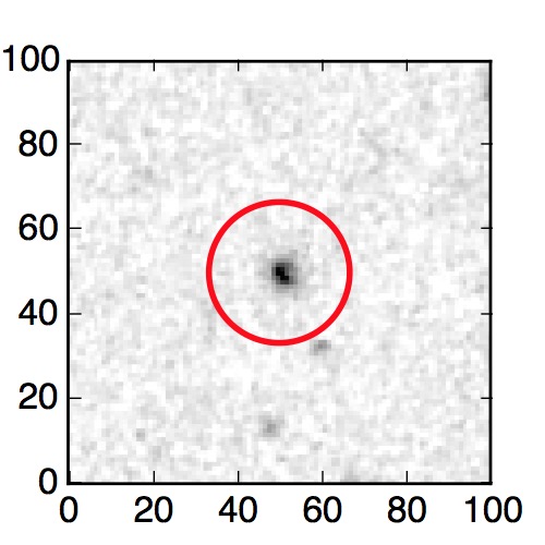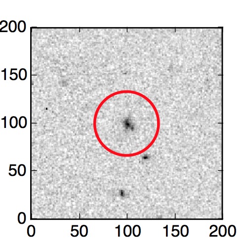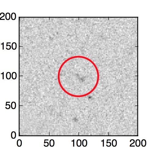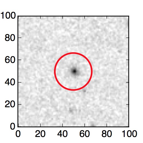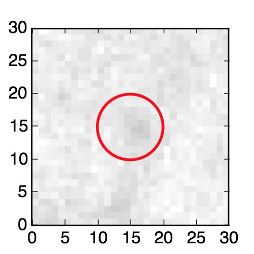 The red circle in the various panels is 1" in radius. The images are 6"x6".