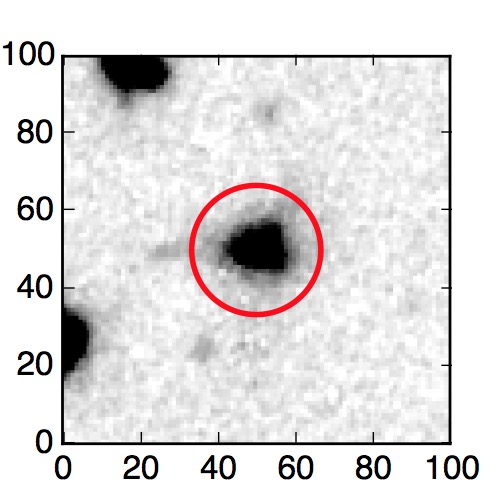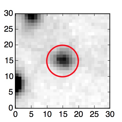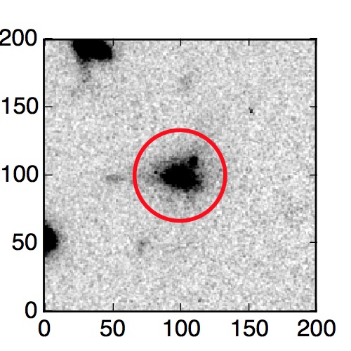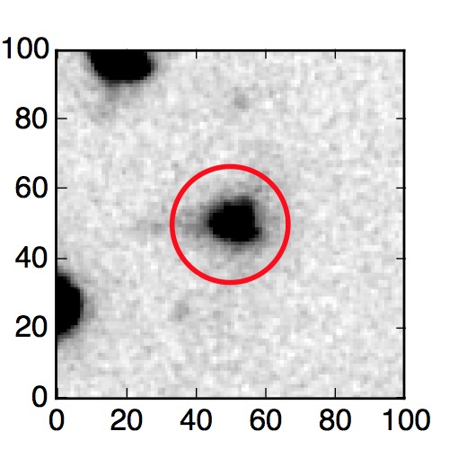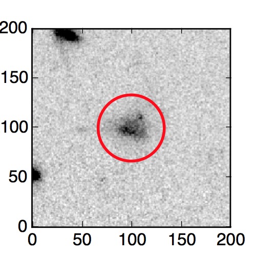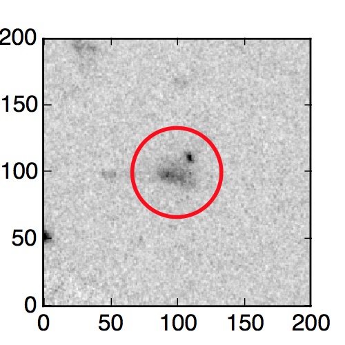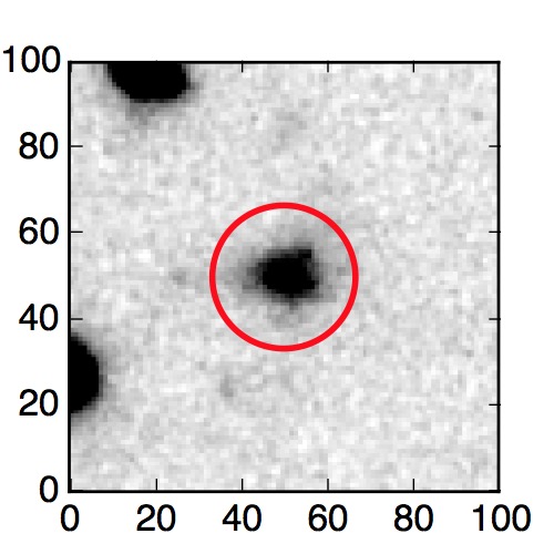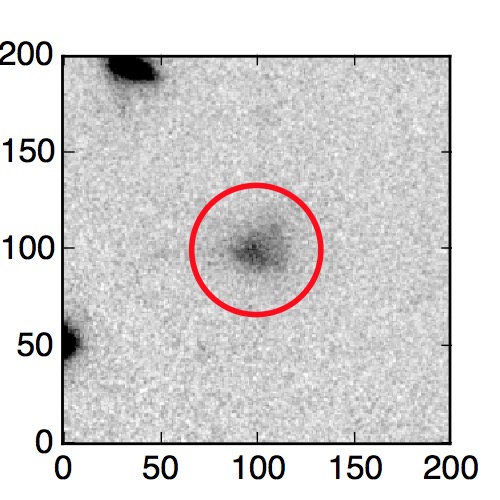 The red circle in the various panels is 1" in radius. The images are 6"x6".