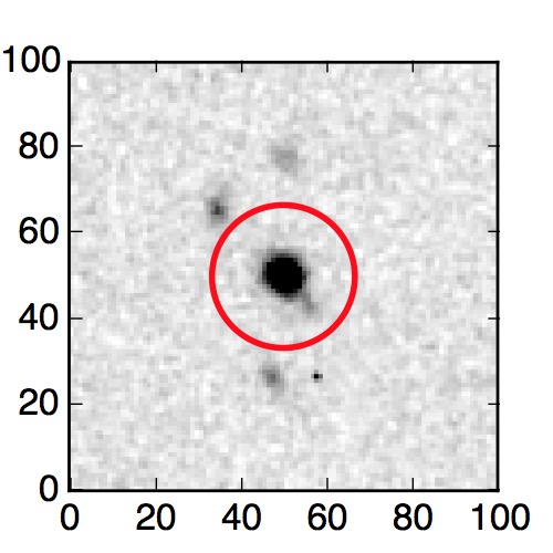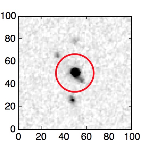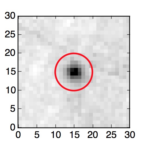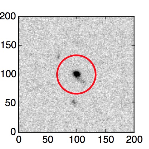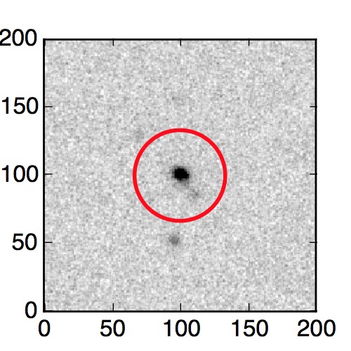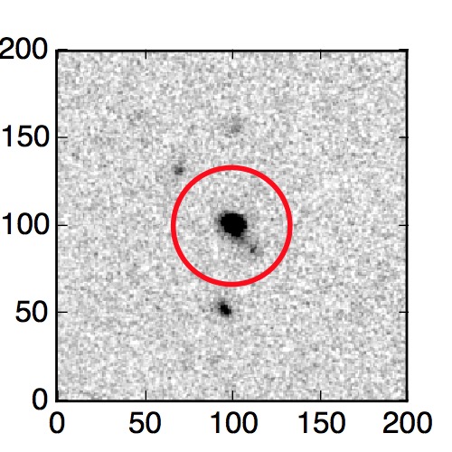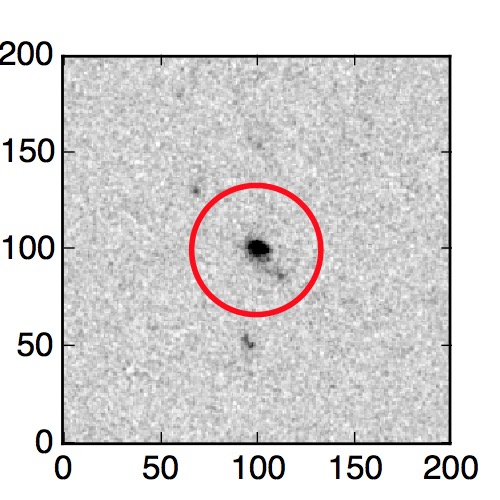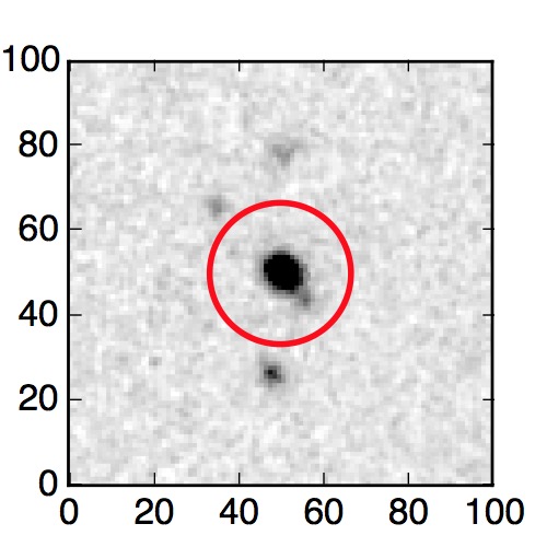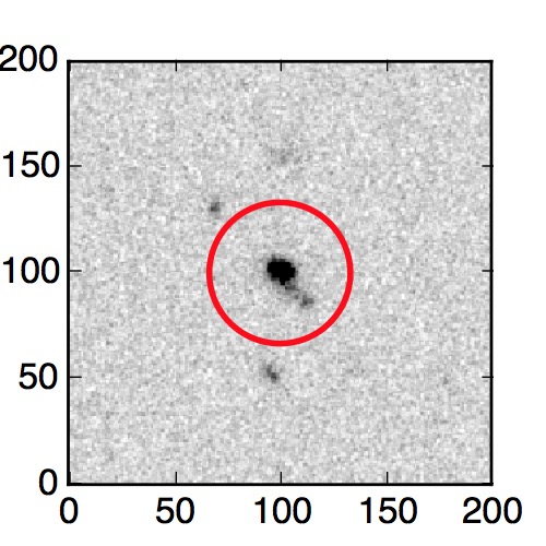 The red circle in the various panels is 1" in radius. The images are 6"x6".
