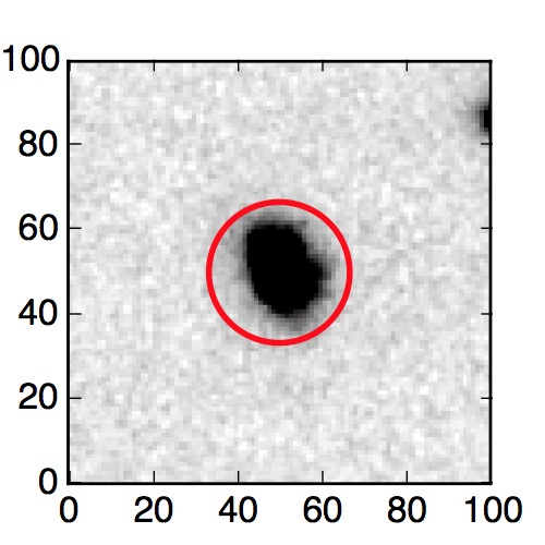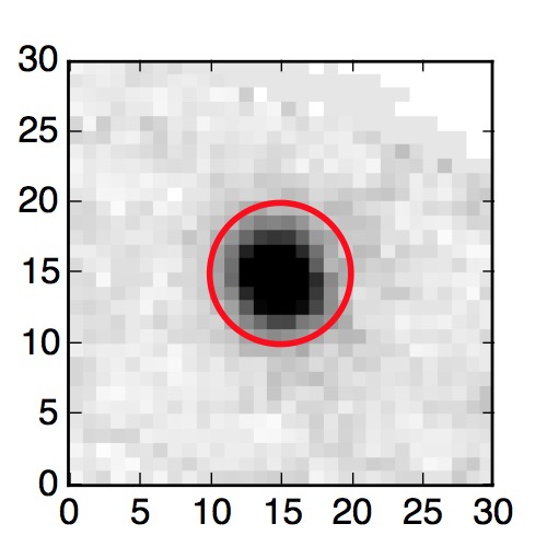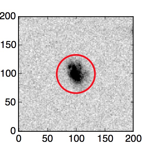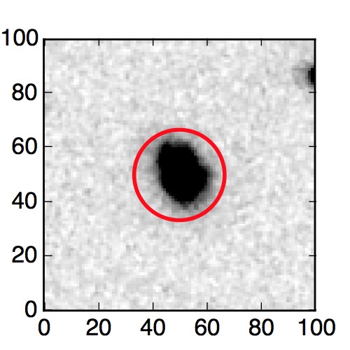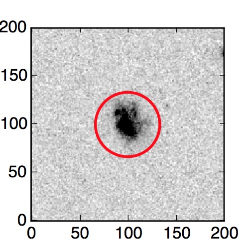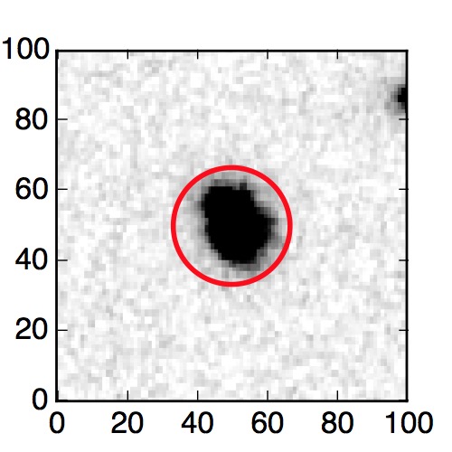 The red circle in the various panels is 1" in radius. The images are 6"x6".