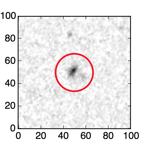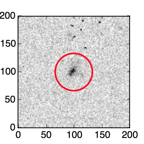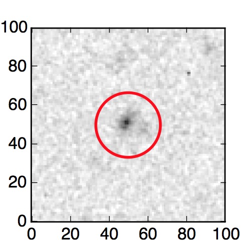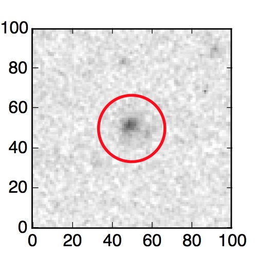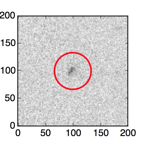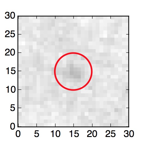The red circle in the various panels is 1" in radius. The images are 6"x6".
