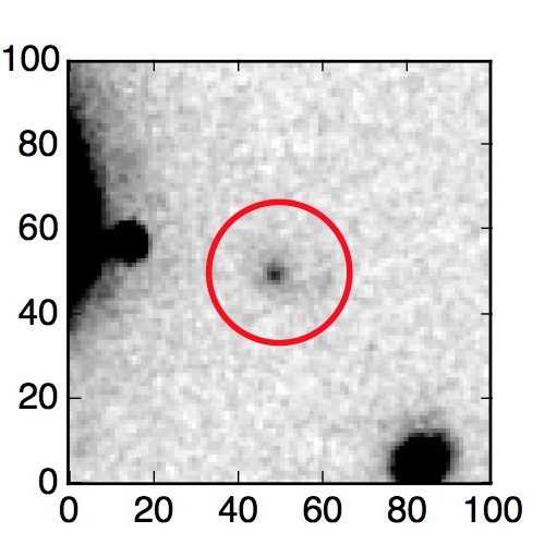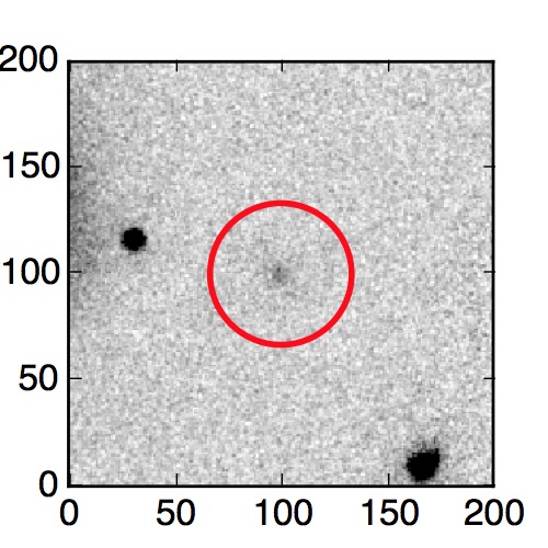 The red circle in the various panels is 1" in radius. The images are 6"x6".