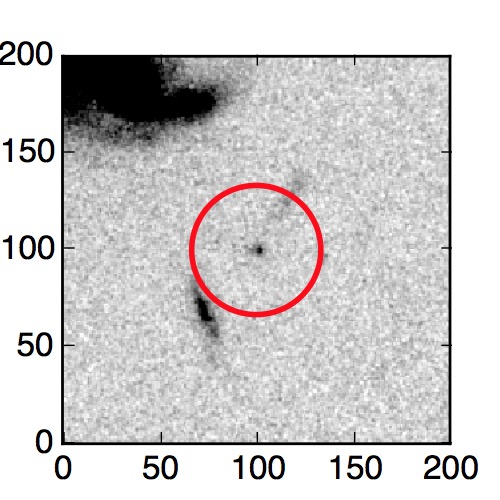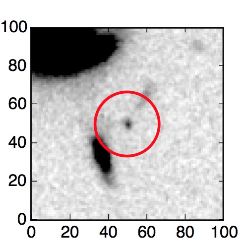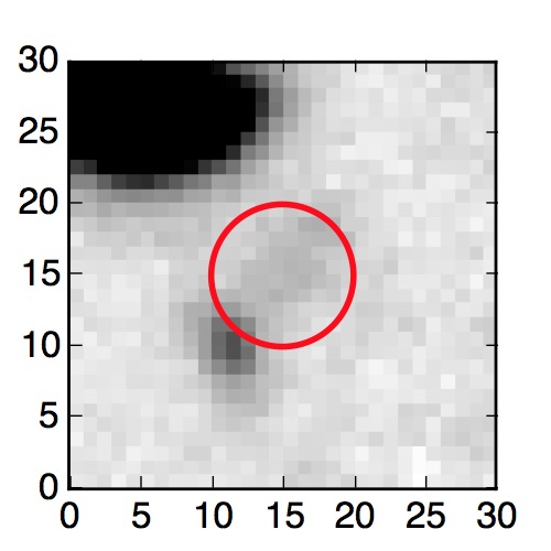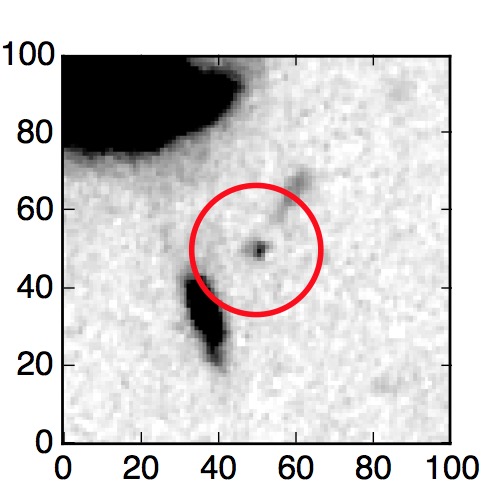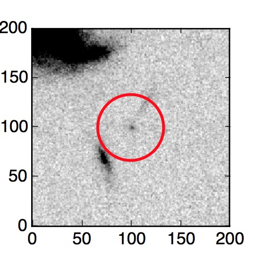 The red circle in the various panels is 1" in radius. The images are 6"x6".