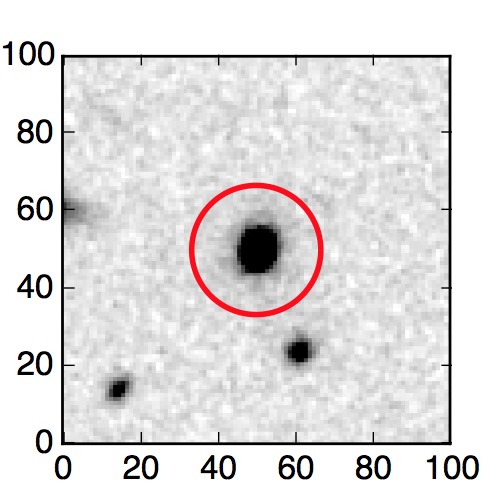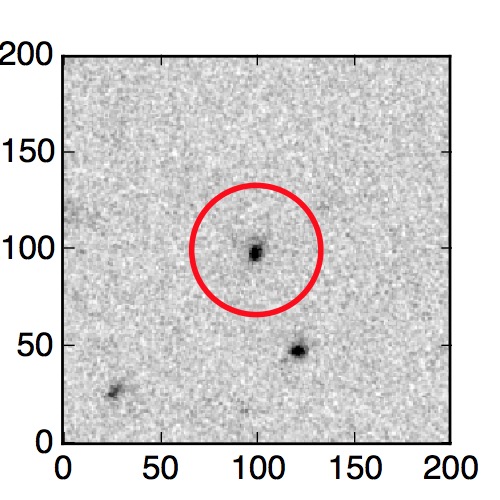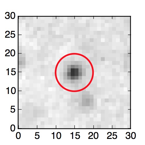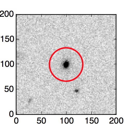 The red circle in the various panels is 1" in radius. The images are 6"x6".