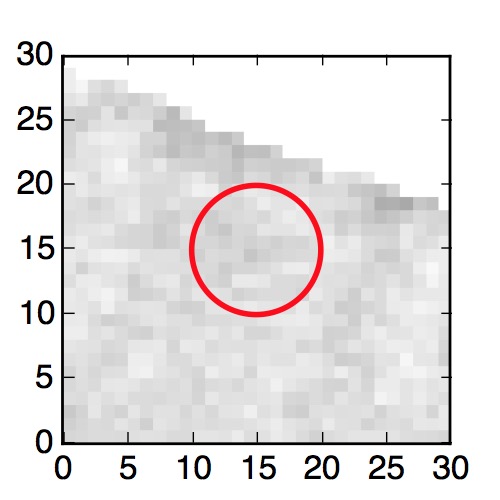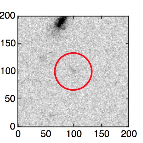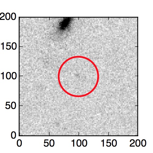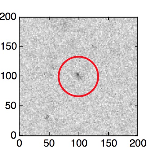 The red circle in the various panels is 1" in radius. The images are 6"x6".