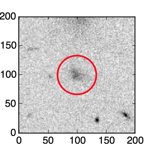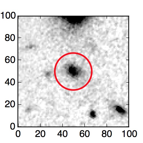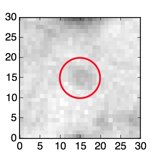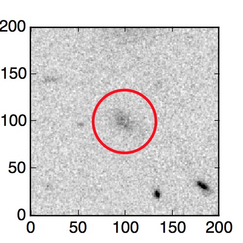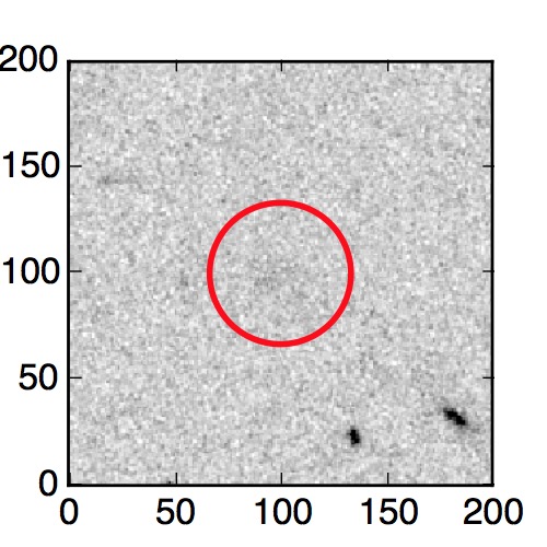 The red circle in the various panels is 1" in radius. The images are 6"x6".
