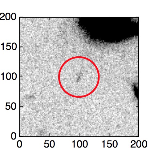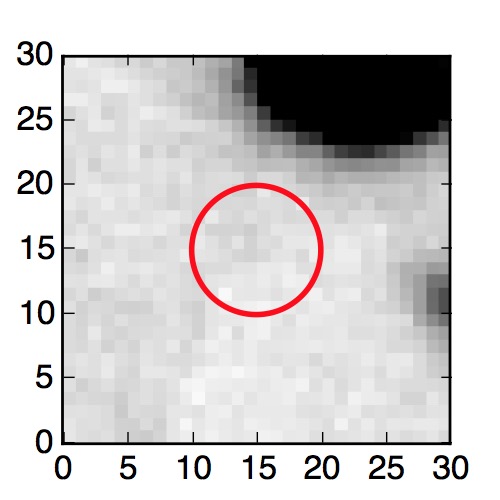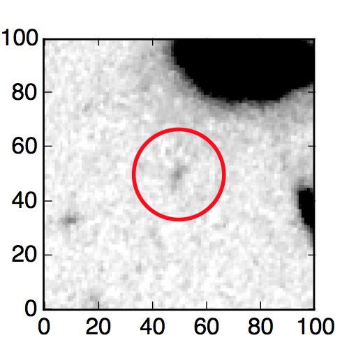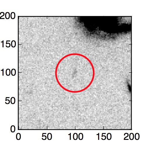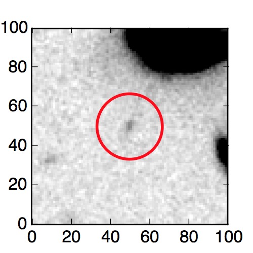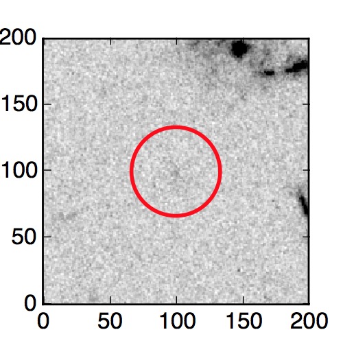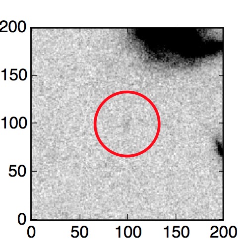 The red circle in the various panels is 1" in radius. The images are 6"x6".