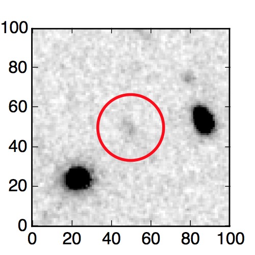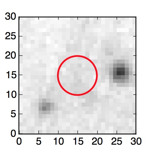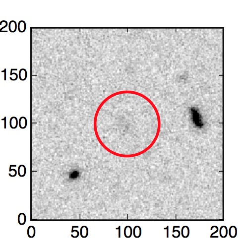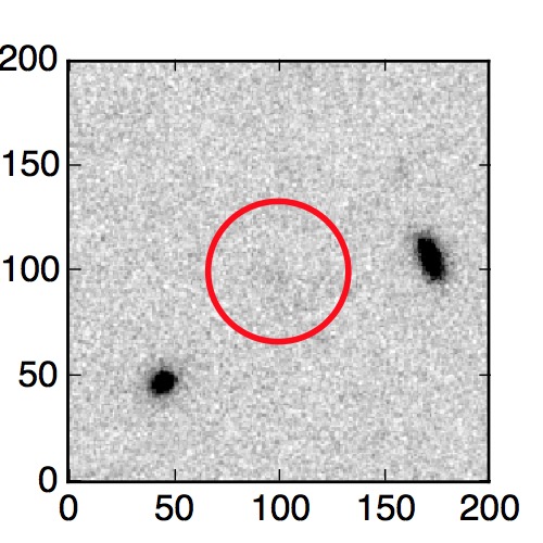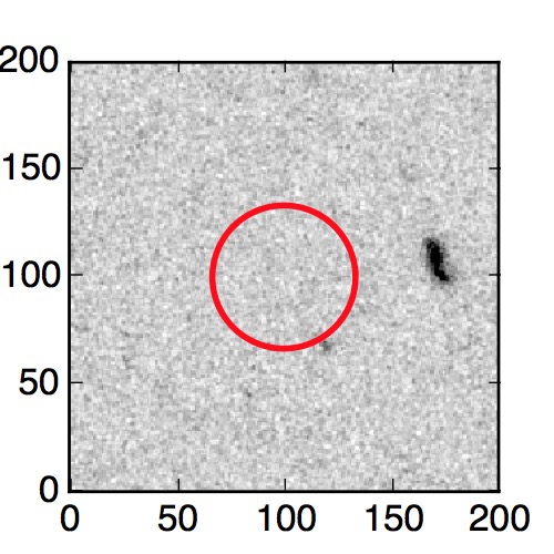 The red circle in the various panels is 1" in radius. The images are 6"x6".