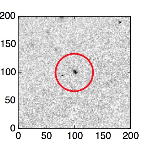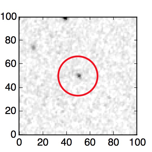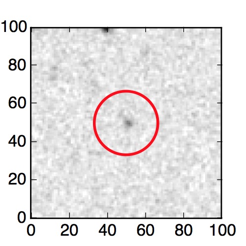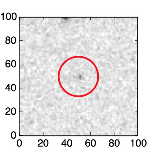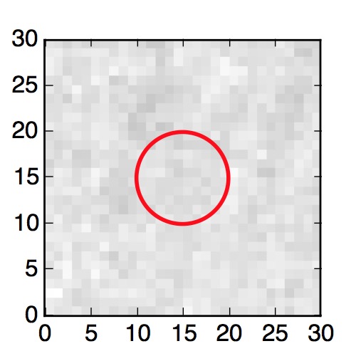 The red circle in the various panels is 1" in radius. The images are 6"x6".