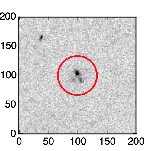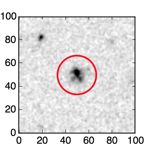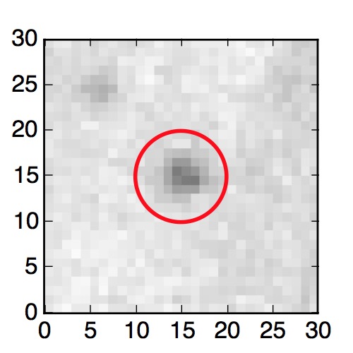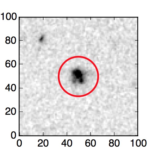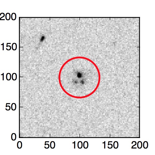 The red circle in the various panels is 1" in radius. The images are 6"x6".