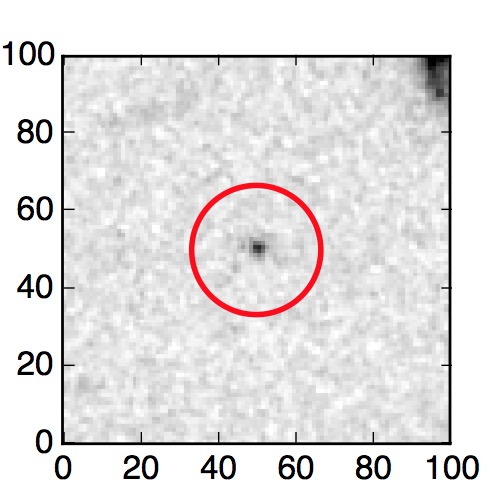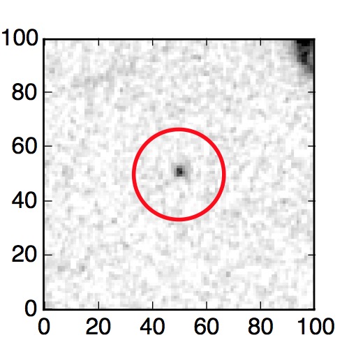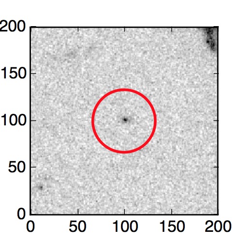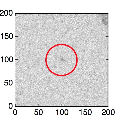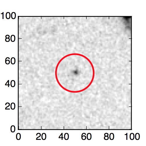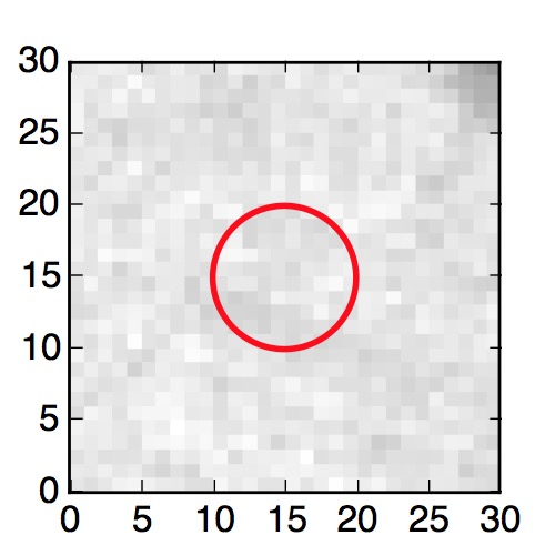 The red circle in the various panels is 1" in radius. The images are 6"x6".