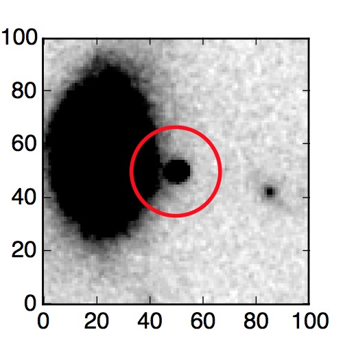 The red circle in the various panels is 1" in radius. The images are 6"x6".
