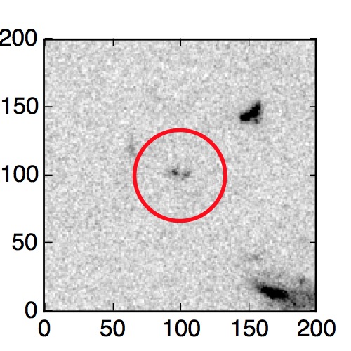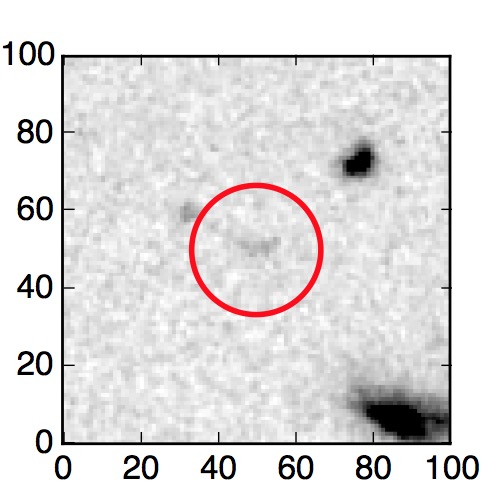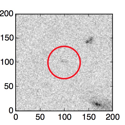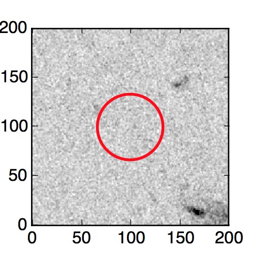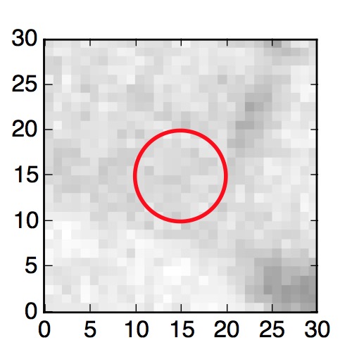The red circle in the various panels is 1" in radius. The images are 6"x6".