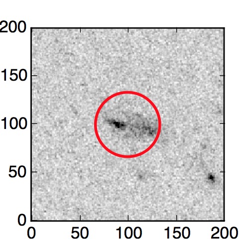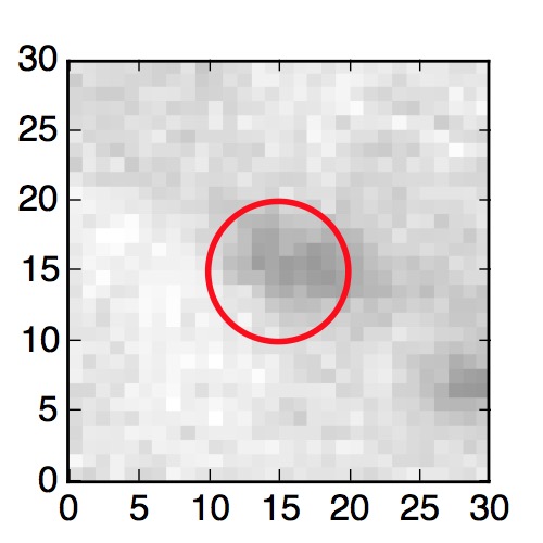 The red circle in the various panels is 1" in radius. The images are 6"x6".