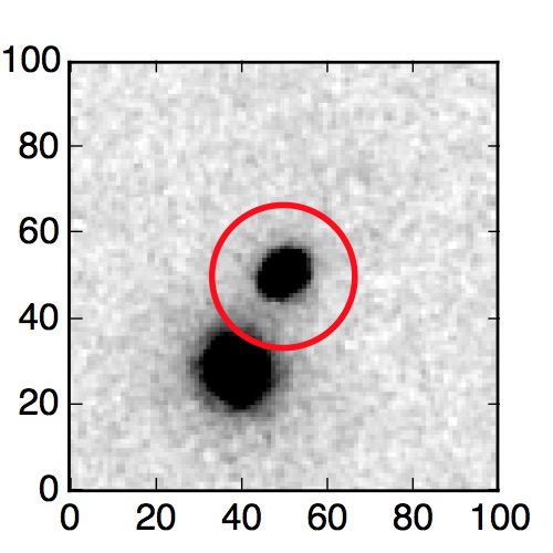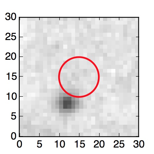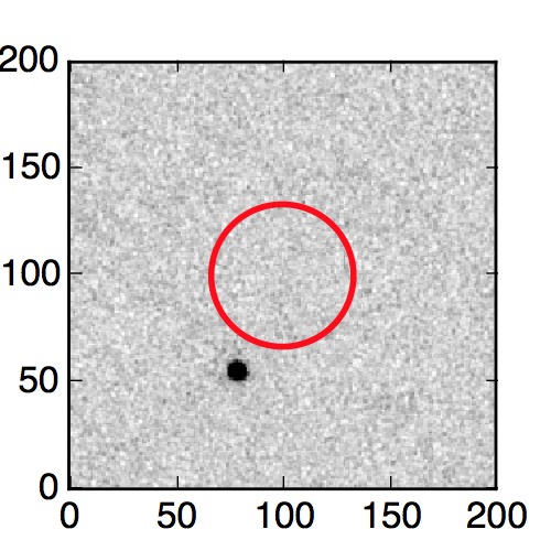 The red circle in the various panels is 1" in radius. The images are 6"x6".