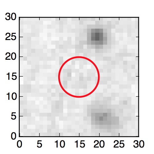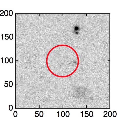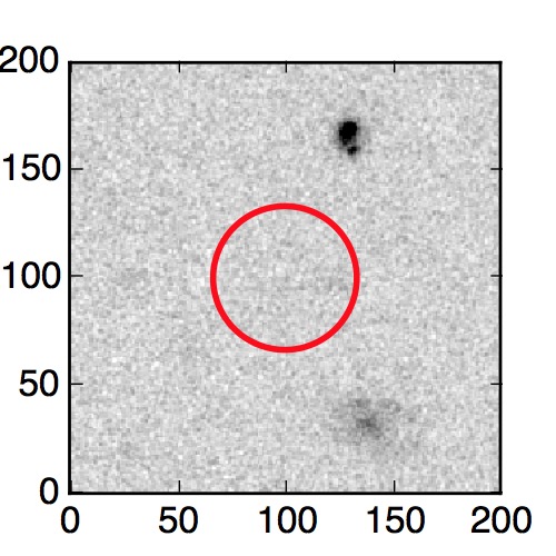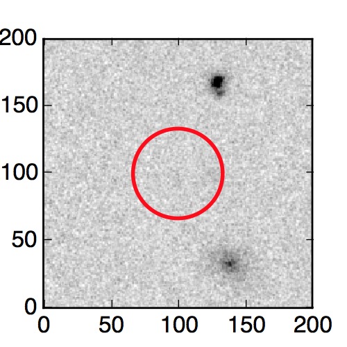 The red circle in the various panels is 1" in radius. The images are 6"x6".