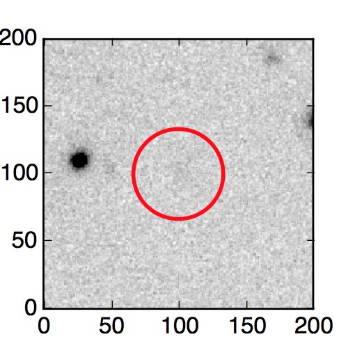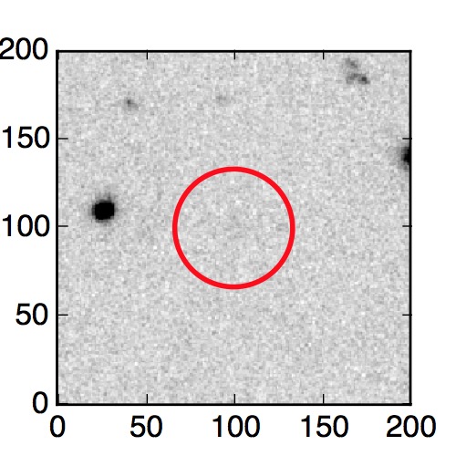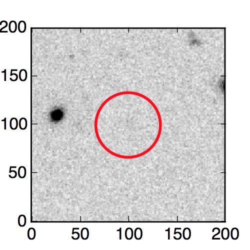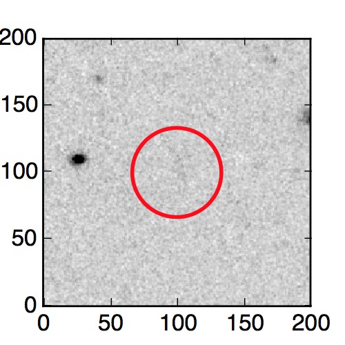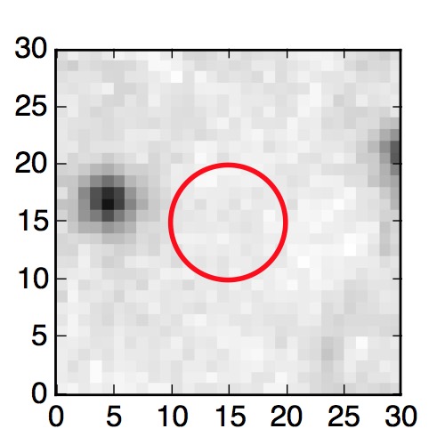 The red circle in the various panels is 1" in radius. The images are 6"x6".