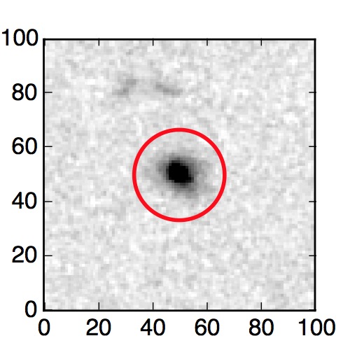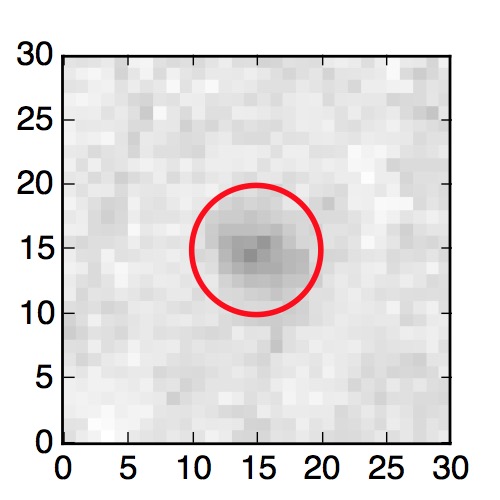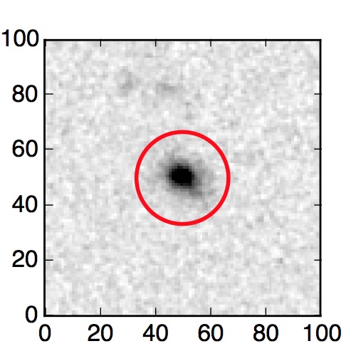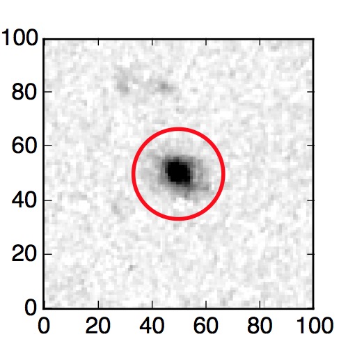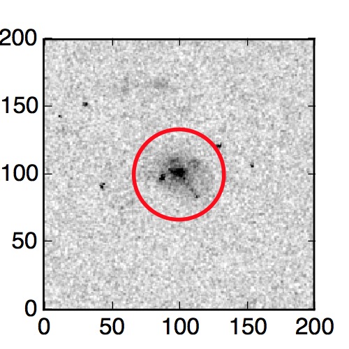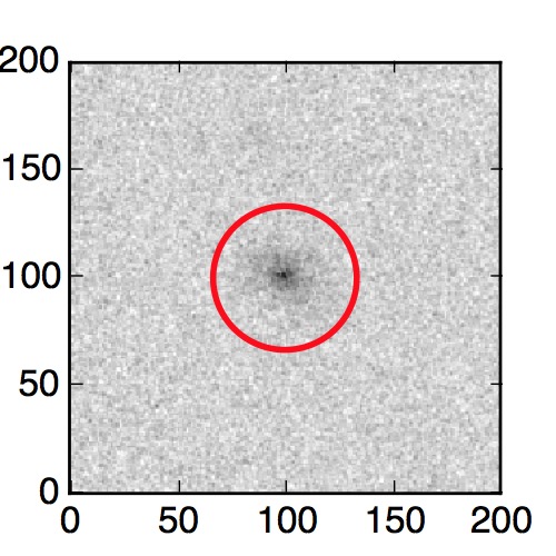 The red circle in the various panels is 1" in radius. The images are 6"x6".