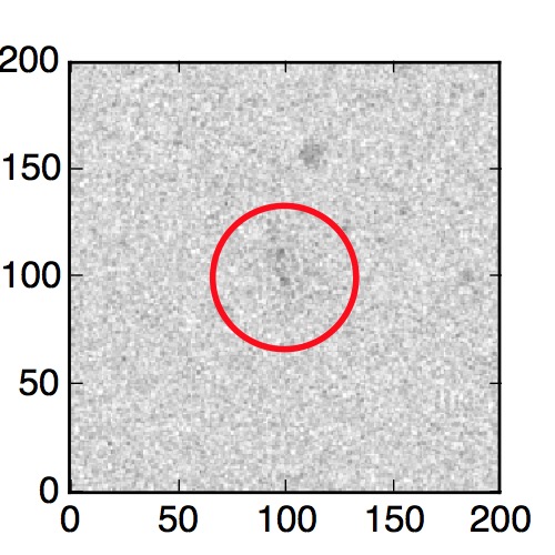 The red circle in the various panels is 1" in radius. The images are 6"x6".