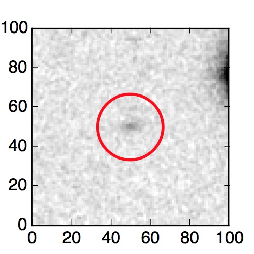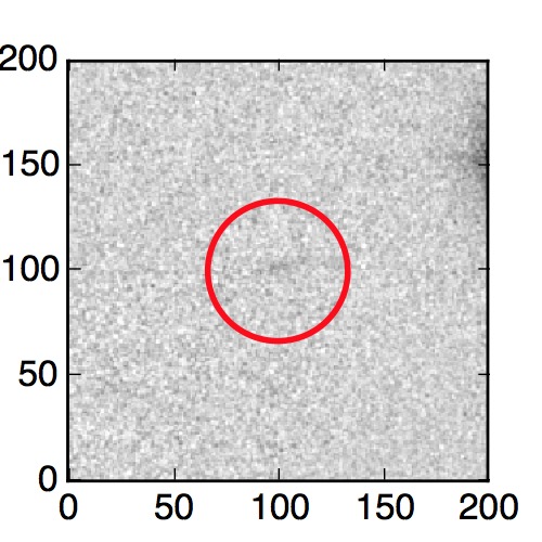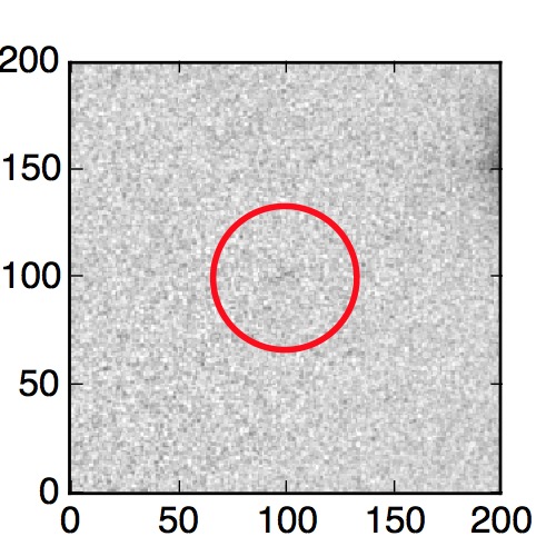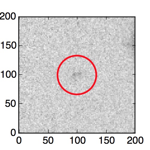 The red circle in the various panels is 1" in radius. The images are 6"x6".