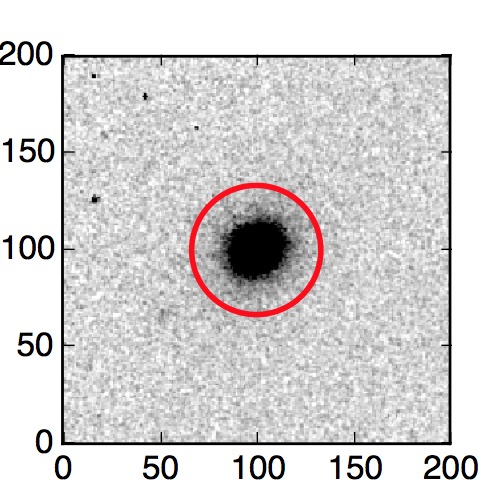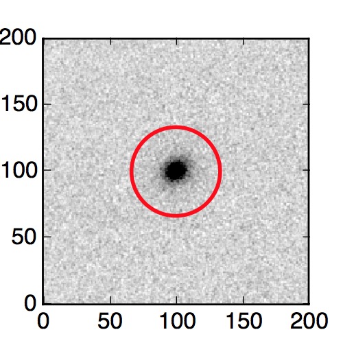 The red circle in the various panels is 1" in radius. The images are 6"x6".