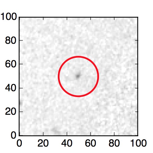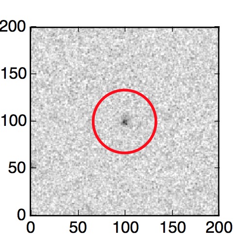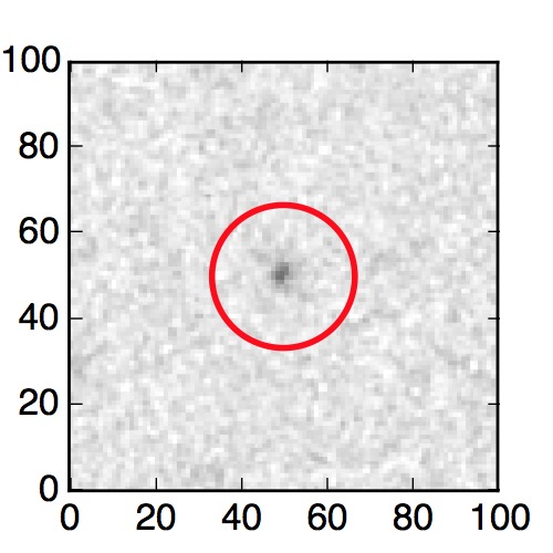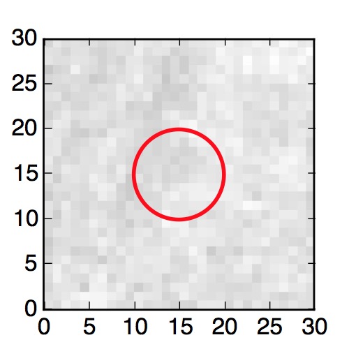 The red circle in the various panels is 1" in radius. The images are 6"x6".