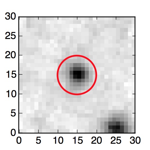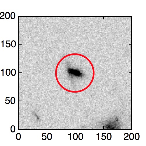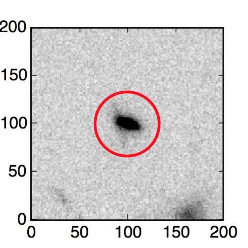 The red circle in the various panels is 1" in radius. The images are 6"x6".
