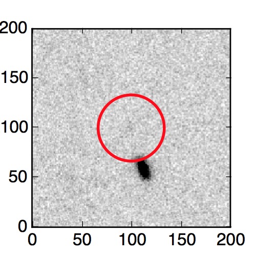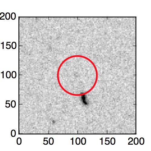 The red circle in the various panels is 1" in radius. The images are 6"x6".