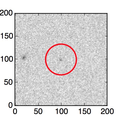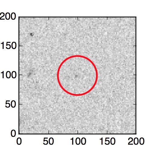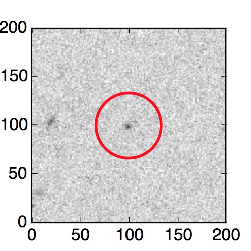 The red circle in the various panels is 1" in radius. The images are 6"x6".