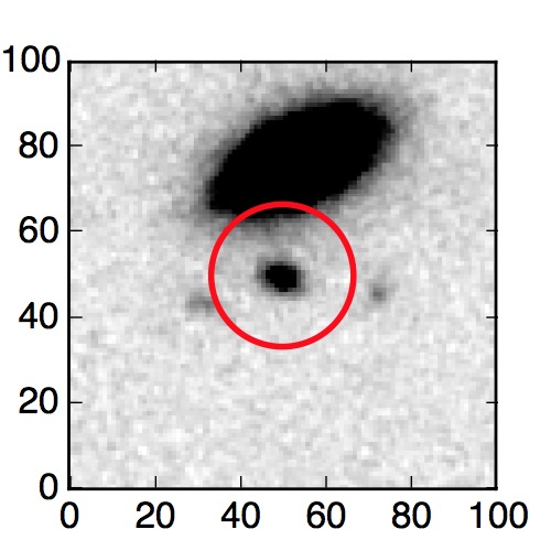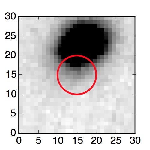 The red circle in the various panels is 1" in radius. The images are 6"x6".