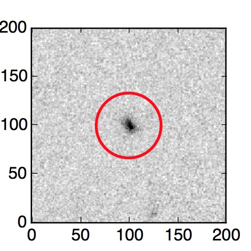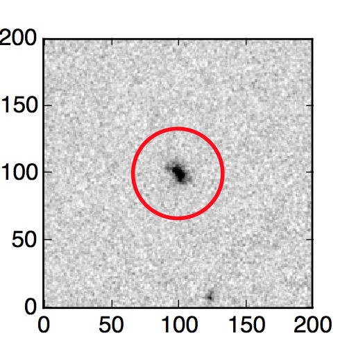 The red circle in the various panels is 1" in radius. The images are 6"x6".