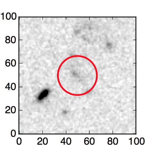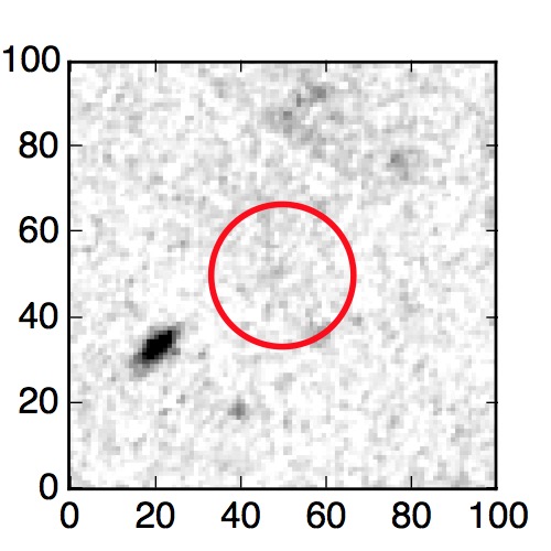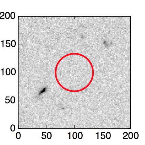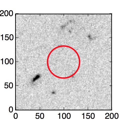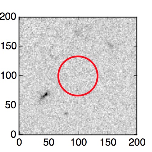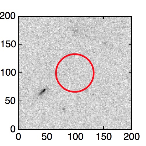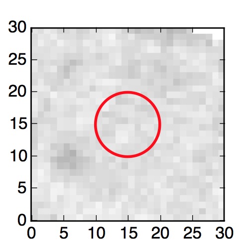 The red circle in the various panels is 1" in radius. The images are 6"x6".