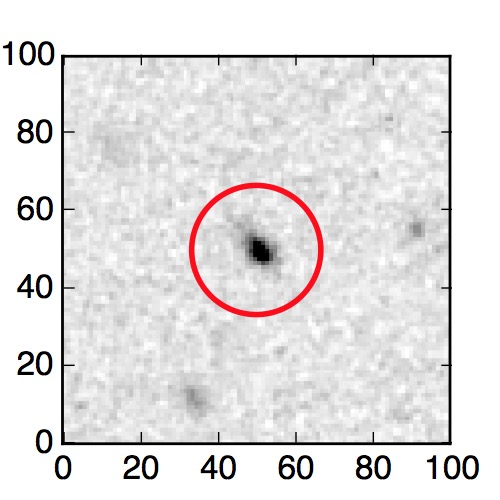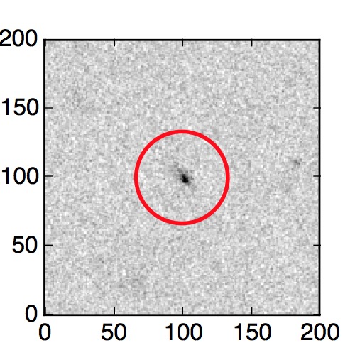 The red circle in the various panels is 1" in radius. The images are 6"x6".