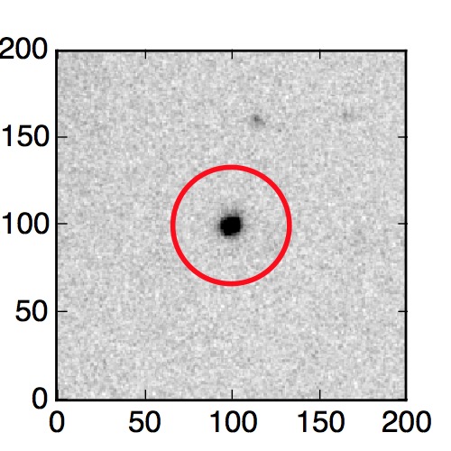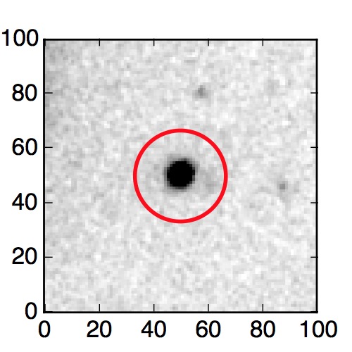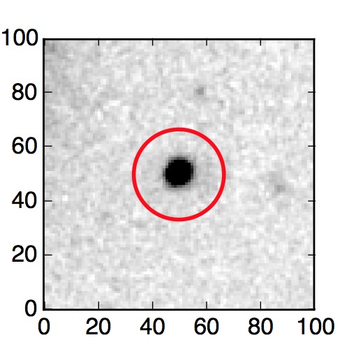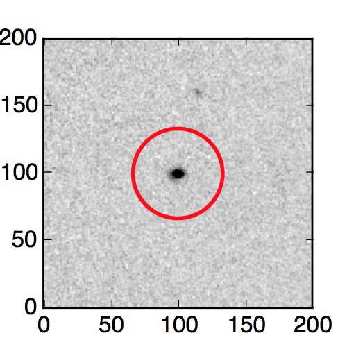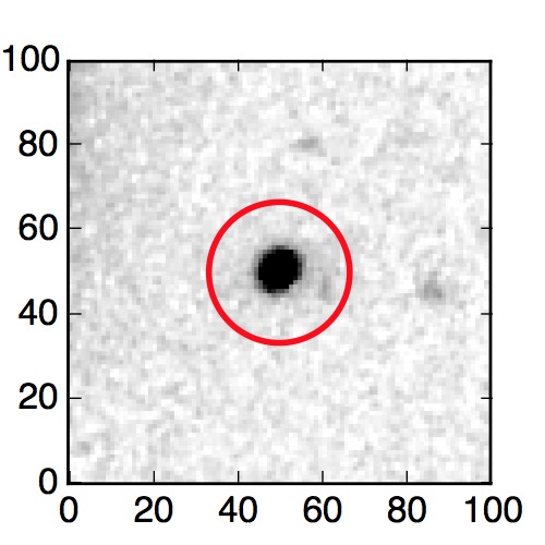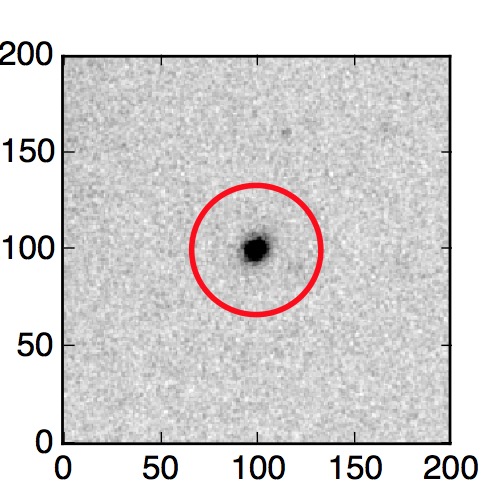 The red circle in the various panels is 1" in radius. The images are 6"x6".