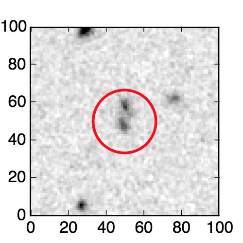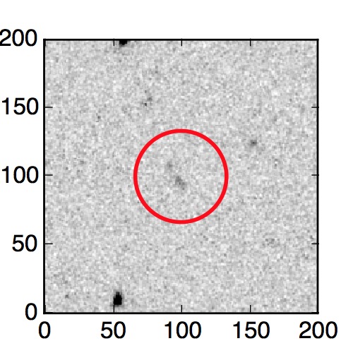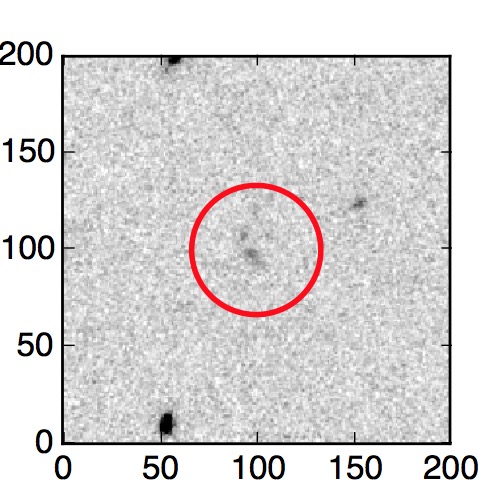 The red circle in the various panels is 1" in radius. The images are 6"x6".