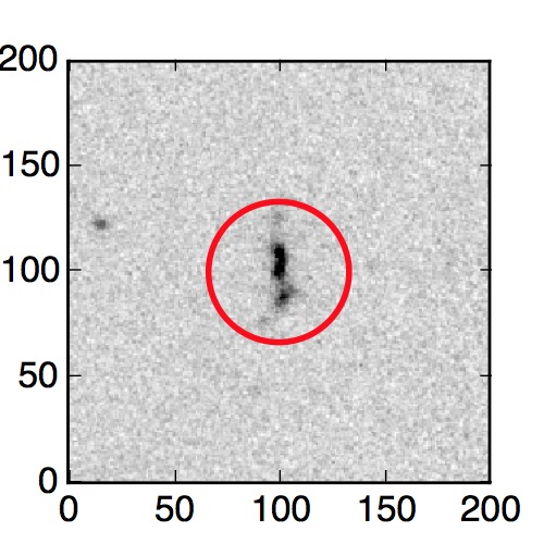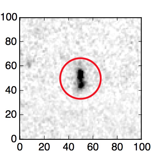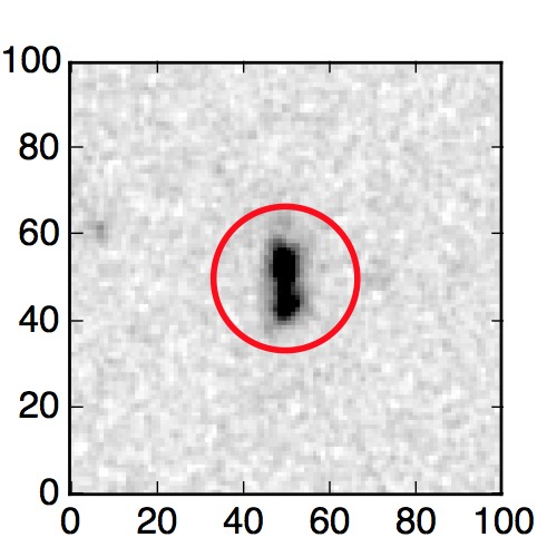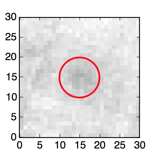 The red circle in the various panels is 1" in radius. The images are 6"x6".