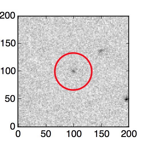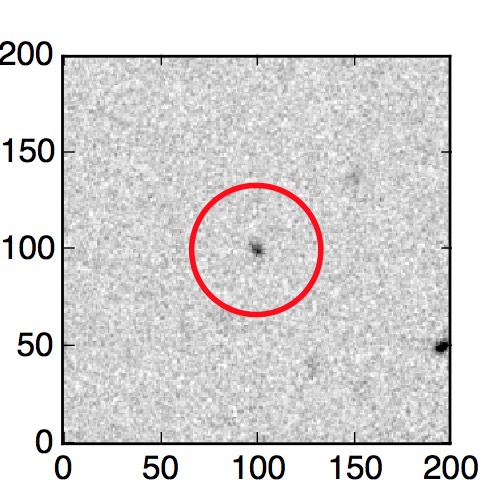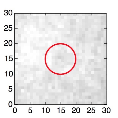 The red circle in the various panels is 1" in radius. The images are 6"x6".