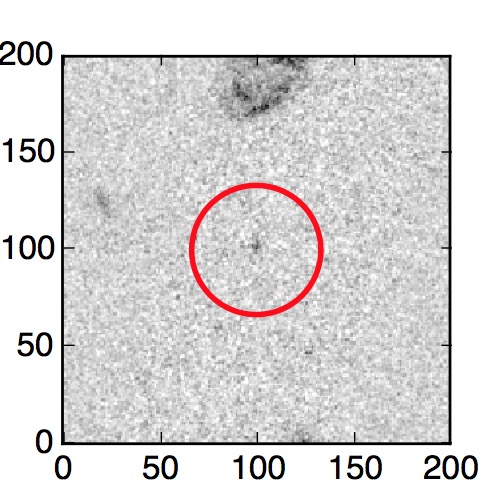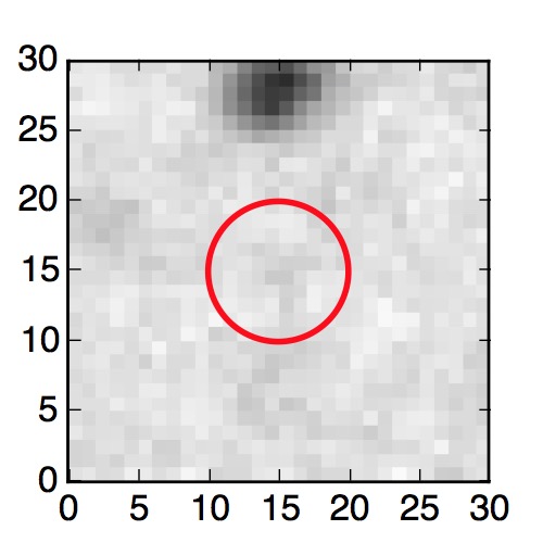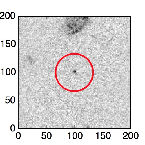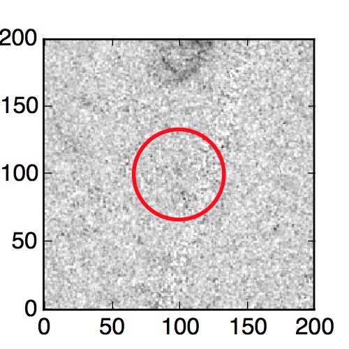 The red circle in the various panels is 1" in radius. The images are 6"x6".