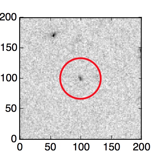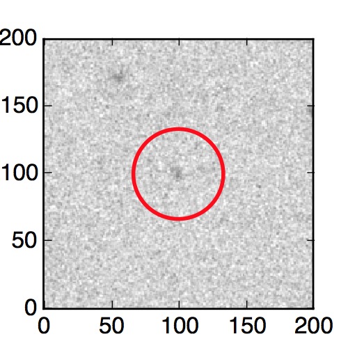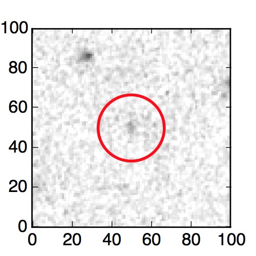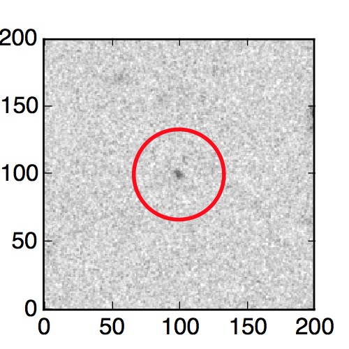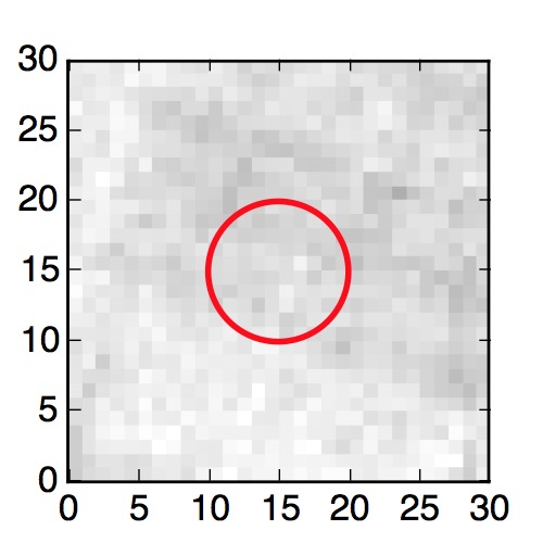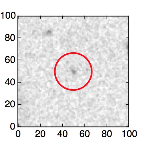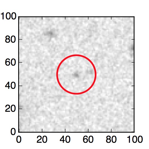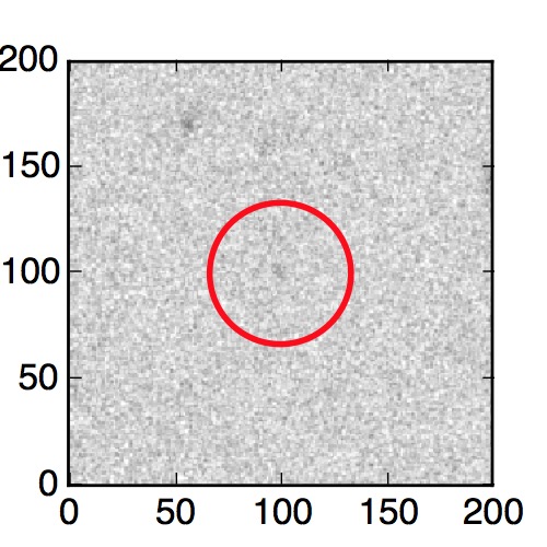 The red circle in the various panels is 1" in radius. The images are 6"x6".
