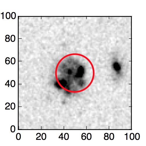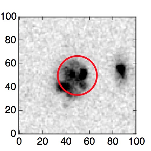 The red circle in the various panels is 1" in radius. The images are 6"x6".