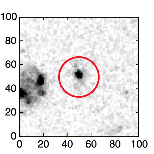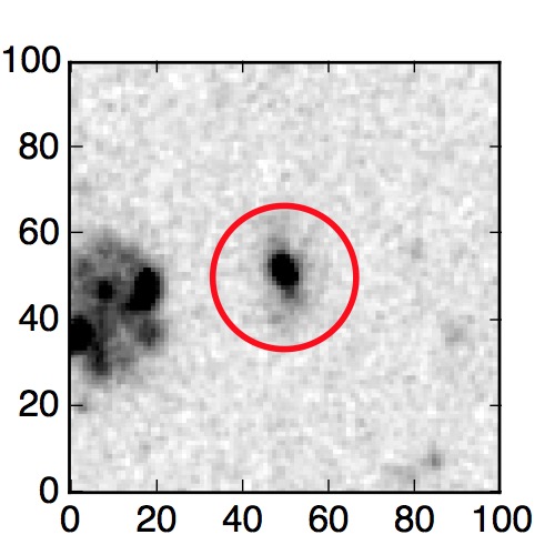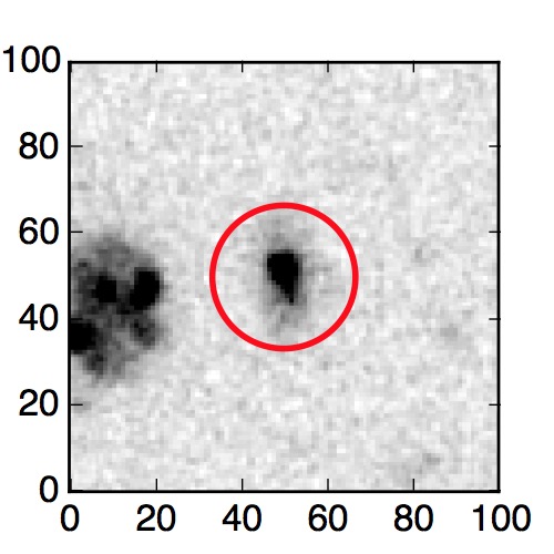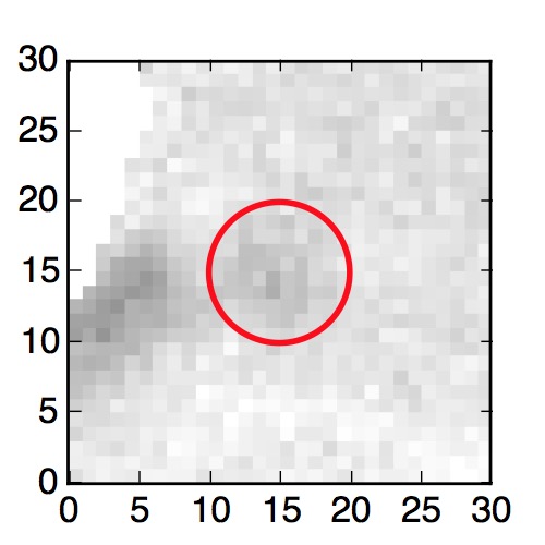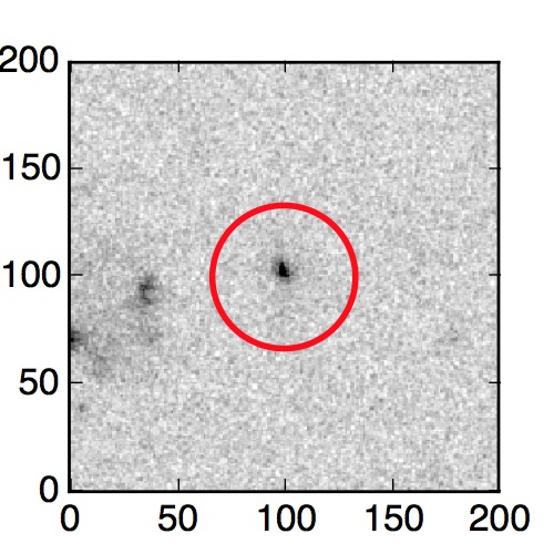 The red circle in the various panels is 1" in radius. The images are 6"x6".