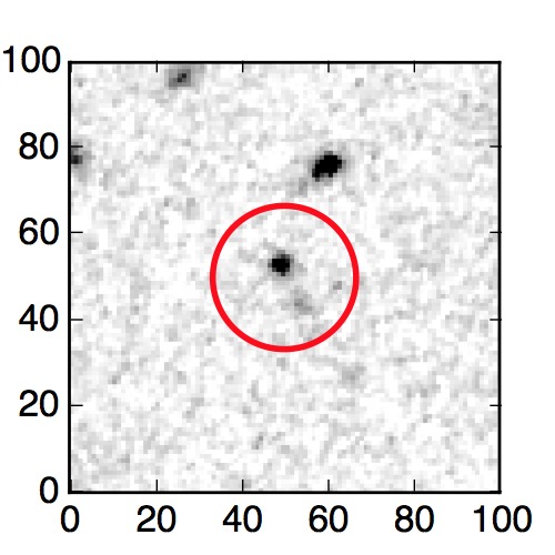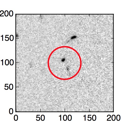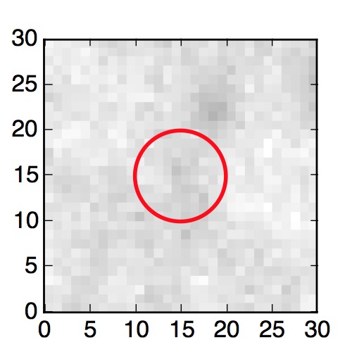 The red circle in the various panels is 1" in radius. The images are 6"x6".