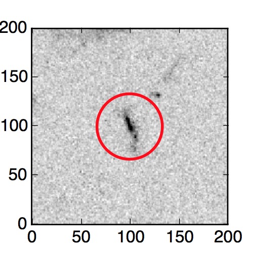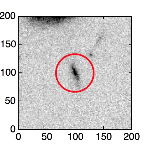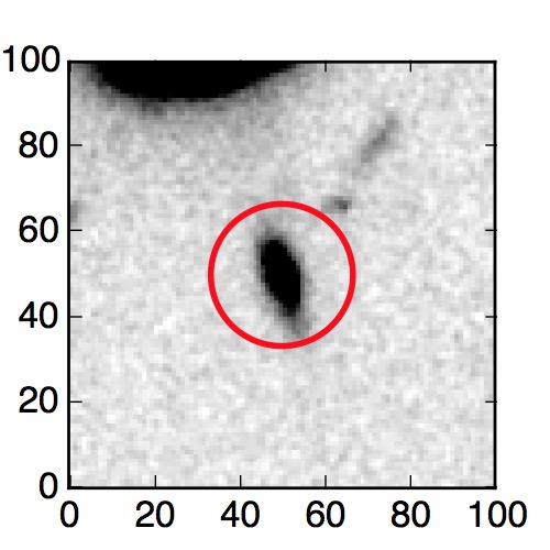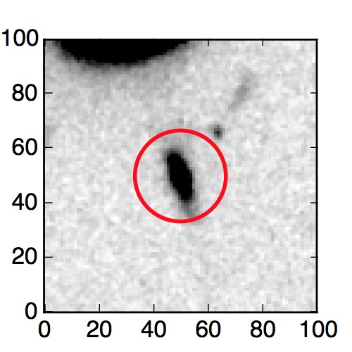 The red circle in the various panels is 1" in radius. The images are 6"x6".