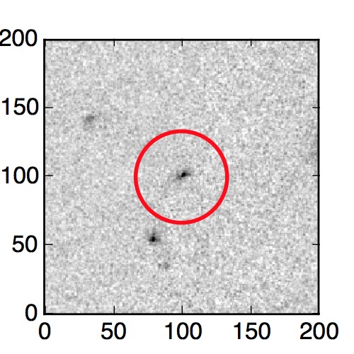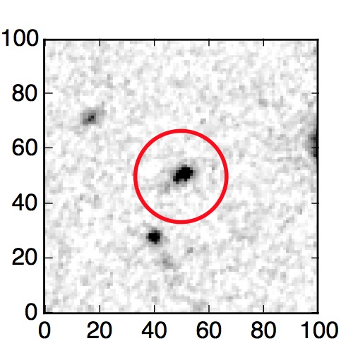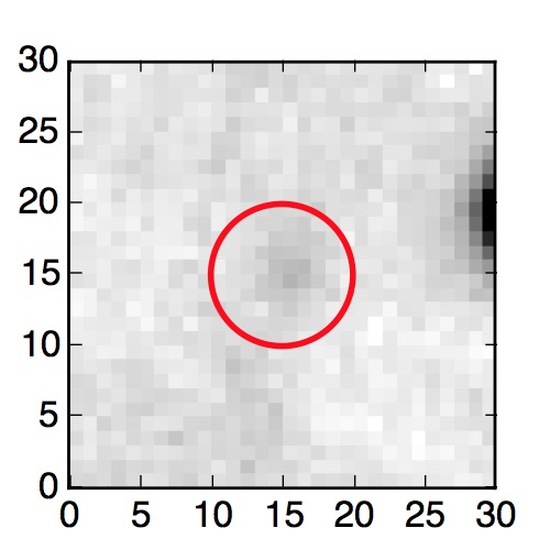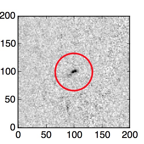 The red circle in the various panels is 1" in radius. The images are 6"x6".