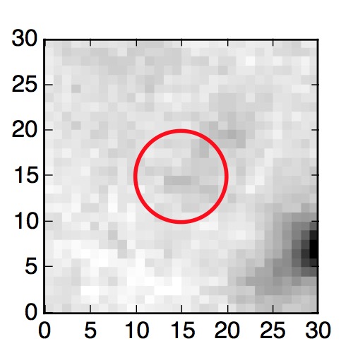 The red circle in the various panels is 1" in radius. The images are 6"x6".