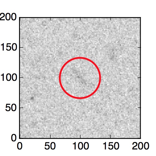 The red circle in the various panels is 1" in radius. The images are 6"x6".